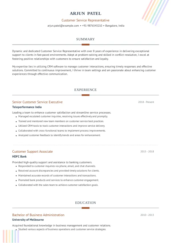 - As a Customer Service Representative in India, your resume should emphasize your communication skills and problem-solving abilities.