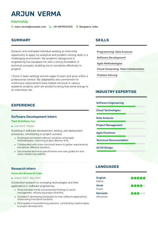 - Your resume should reflect the unique challenges and opportunities of the Indian internship landscape.