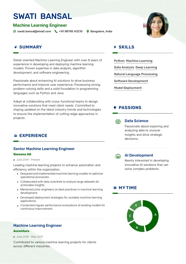 - Personalized resume templates designed for Machine Learning Engineers in India.