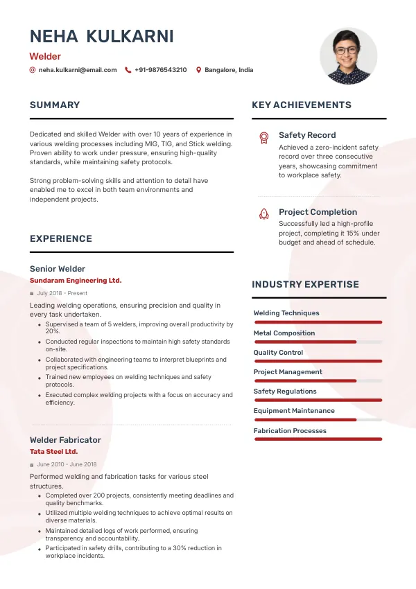 With a well-engineered resume, you can increase your chances of landing interviews for Welder positions in India, paving the way for a successful career.